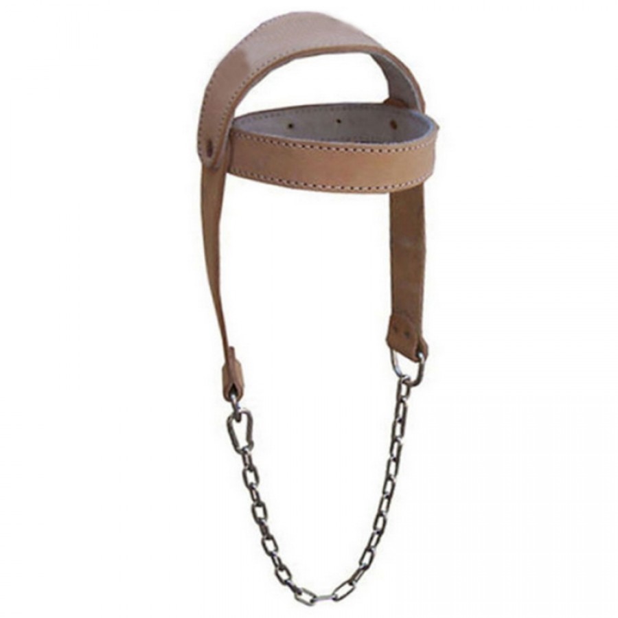 Top quality Head harness This is made of real leather cow hide comes complete with chromed chain Strong Riveted construction Suitable for weight Lifting Natural color
